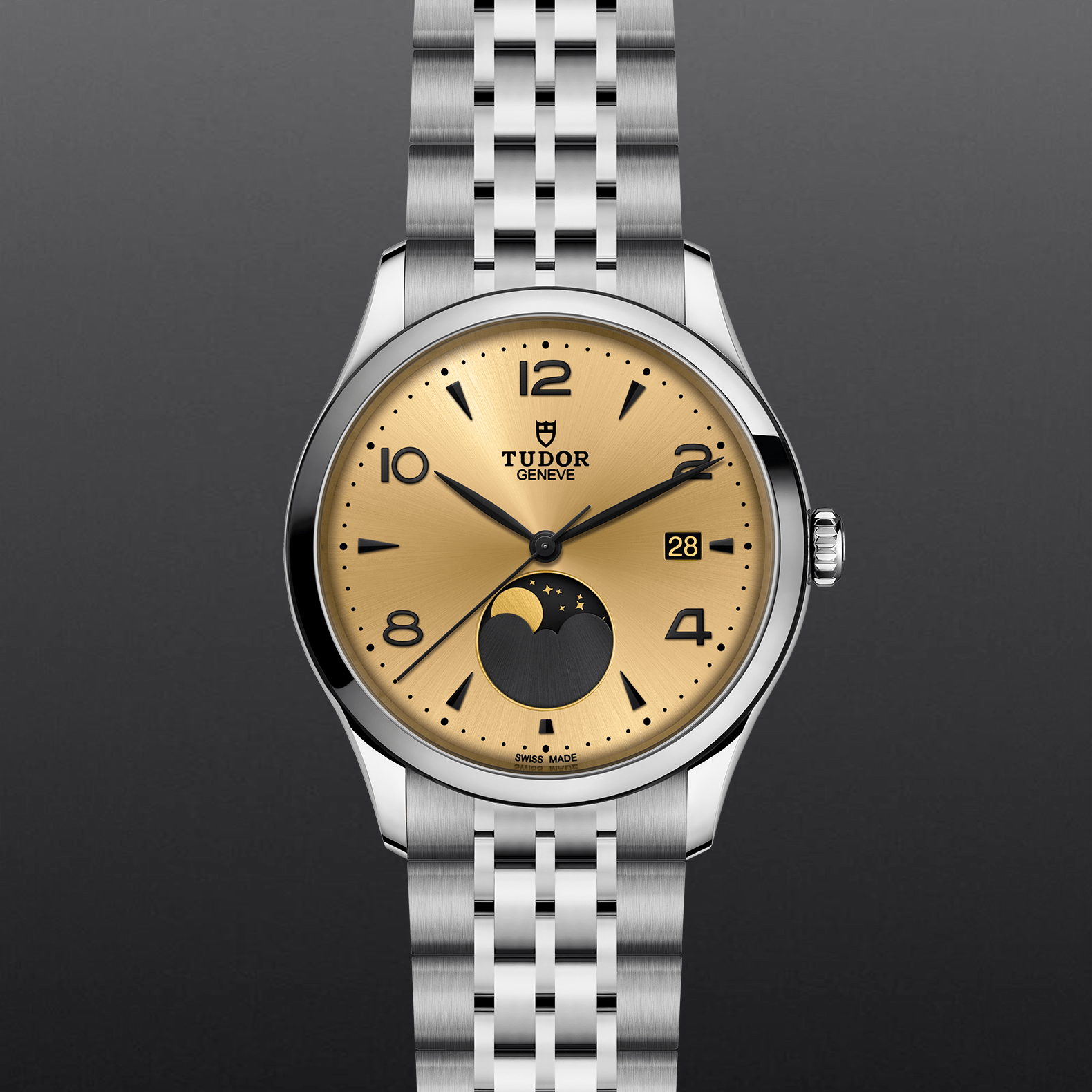 钢表壳,直径39毫米, 月相指示