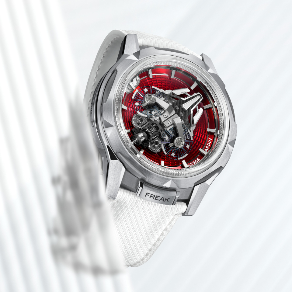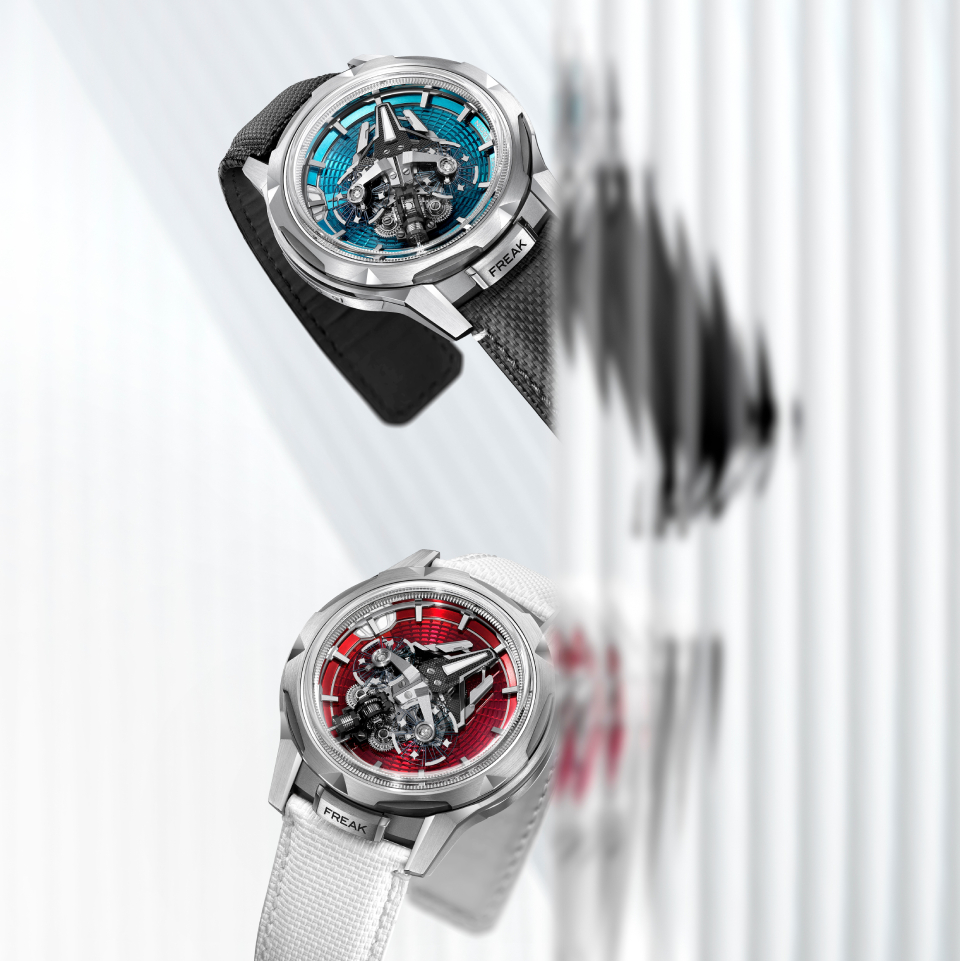 Both new editions of the Freak S feature rotating hour discs enamelled in vibrant turquoise blue and deep ruby red are crafted entirely in-house at Donzé Cadrans, the Manufacture’s dedicated enamelling workshop located just steps from the Ulysse Nardin Manufacture in Le Locle.
